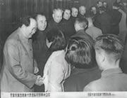 1956年5月5日,毛澤東等黨和國家領導人在北京接見參加全國先進生產者代表會議的兩名一局職工。